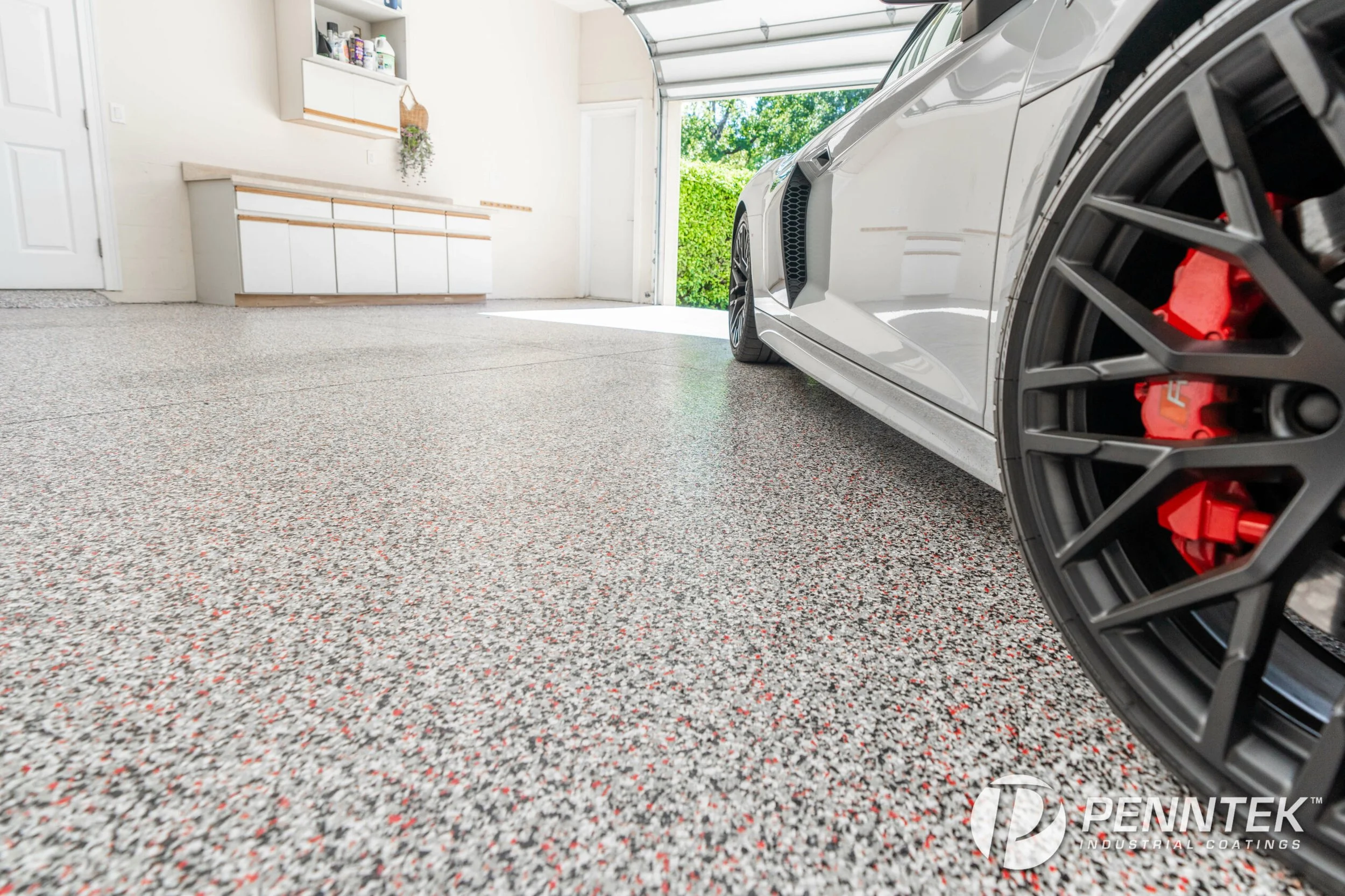 Color ChipsWe then broadcast your favorite choice of color chips directly onto the base layer to add texture and beauty to your garage.